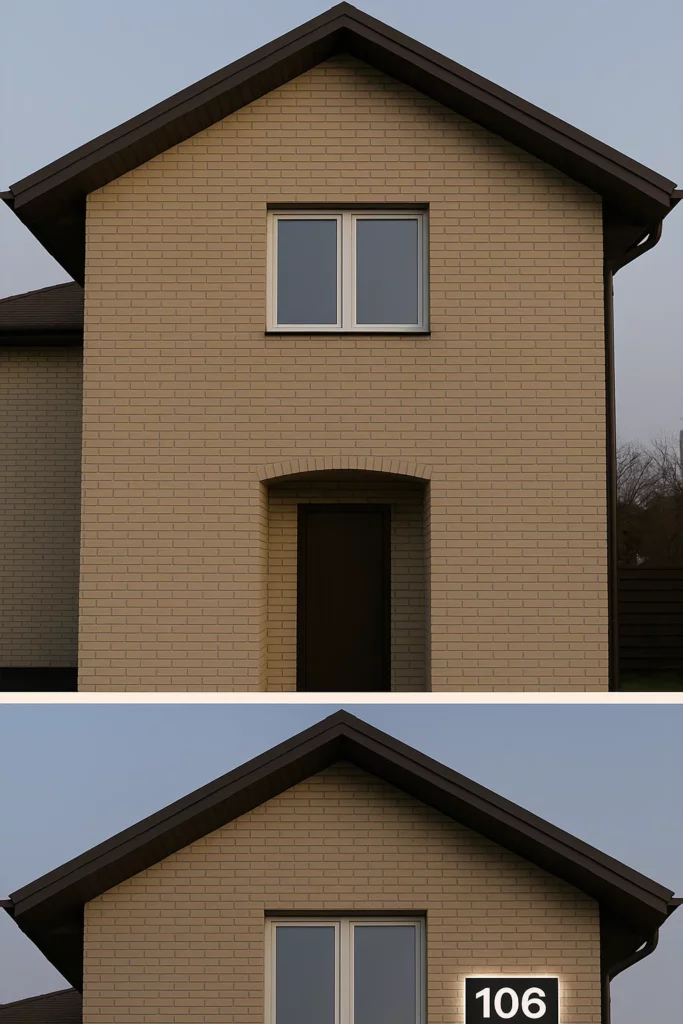 🖼️ Фото: до – пустой фасад, после – светящаяся табличка с номером