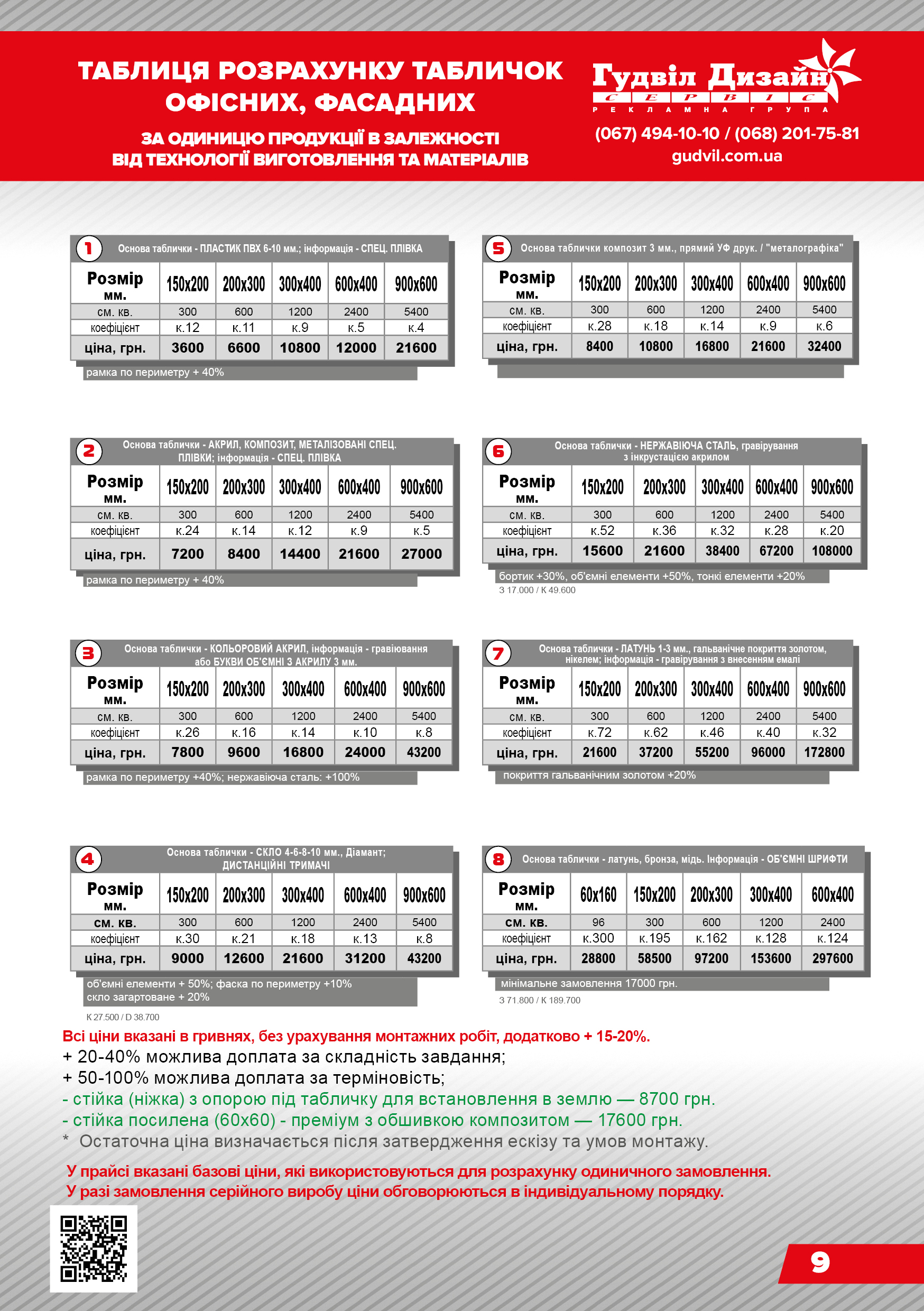 Зверніться до нас — підкажемо, скільки коштує табличка саме для вас, порадимо матеріал, зробимо якісний макет і швидко виготовимо.