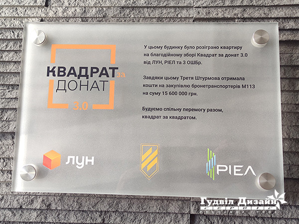 Якщо Ви бажаєте зробити свій офіс привабливим, оригінальним і неповторним, наша компанія знає, чим Вам допомогти. Скористайтеся офісної табличкою зі скла! Табличка на скляній основі вигідно підкреслить стиль і прекрасно прикрасить найважливіші кабінети в офісі. Зробити замовлення подібної вивіски можна на нашому сайті рекламної групи «Гудвіл Дизайн Сервіс». Ми даємо гарантію на оперативне виготовлення, висока якість і вигідні ціни.