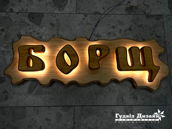 Освітлення об’ємних літер на дерев’яній вивісці