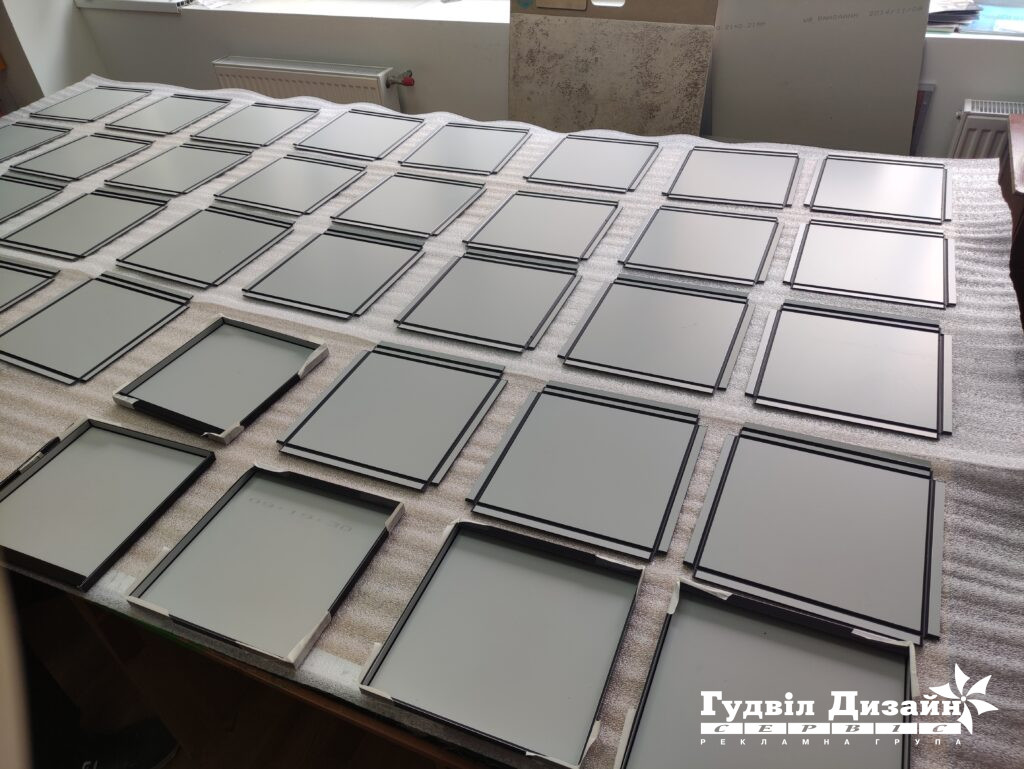 Логотип встановлюється вручну по кліше з акрилу, яке працює як розмічальний шаблон.